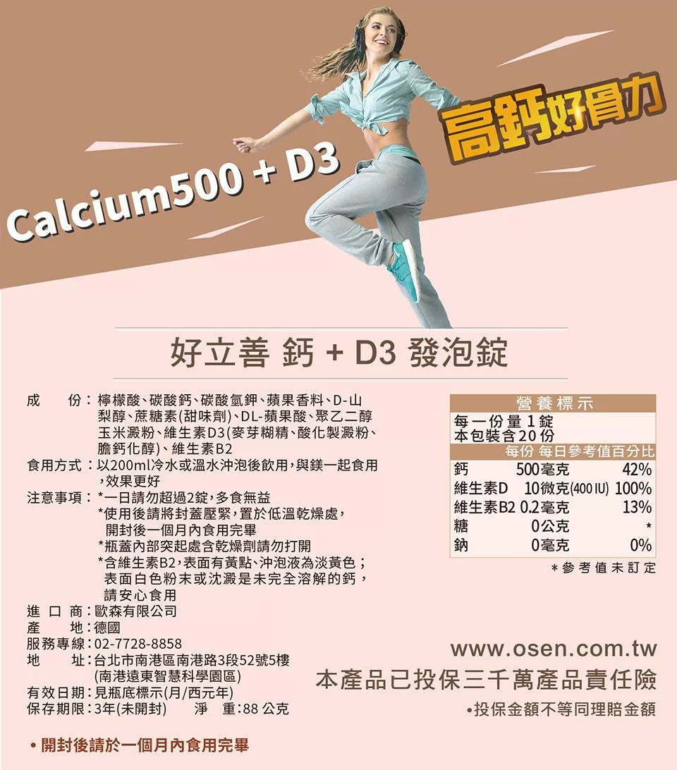 品名:好立善 鈣+D3發泡錠