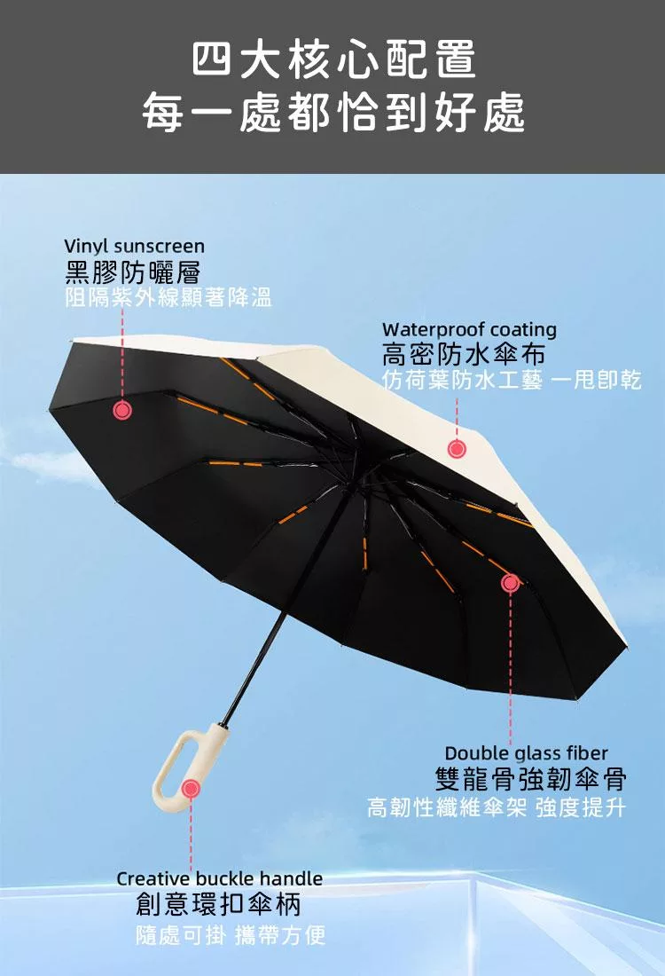 【好拾選物】旋轉扣式正向自動勾勾傘/折疊傘/遮陽傘 -星空黑