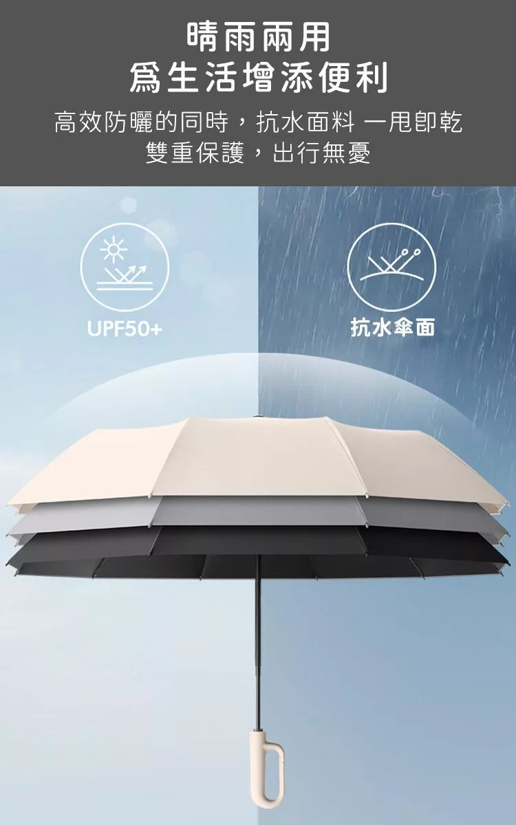 【好拾選物】扣環反向自動勾勾傘/折疊傘/遮陽傘 - 迷霧灰