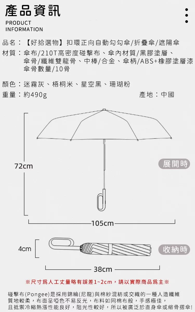 【好拾選物】扣環正向自動勾勾傘/折疊傘/遮陽傘 - 迷霧灰