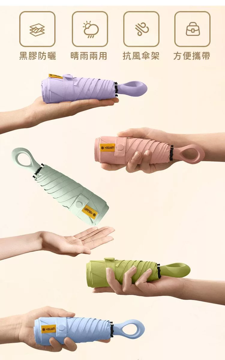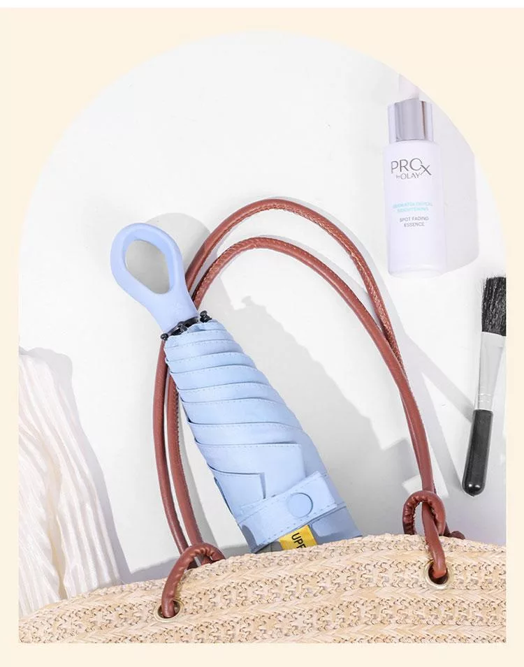 【EZlife】小清新迷你防曬遮陽折疊晴雨傘 藍色