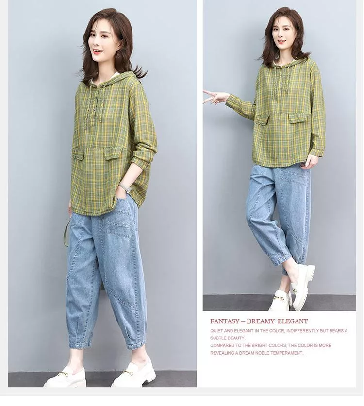 【慢。生活】復古撞色刺繡休閒大碼牛仔哈倫褲 J10584 FREE 綠色
