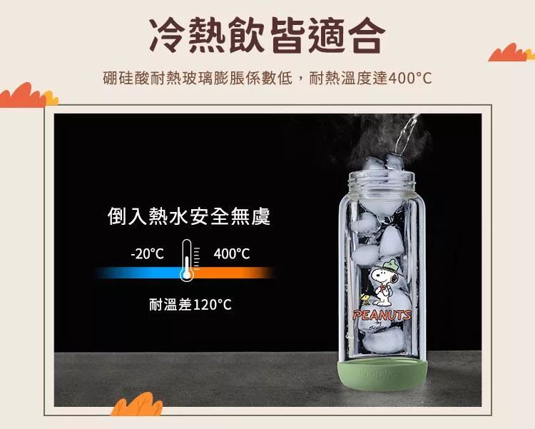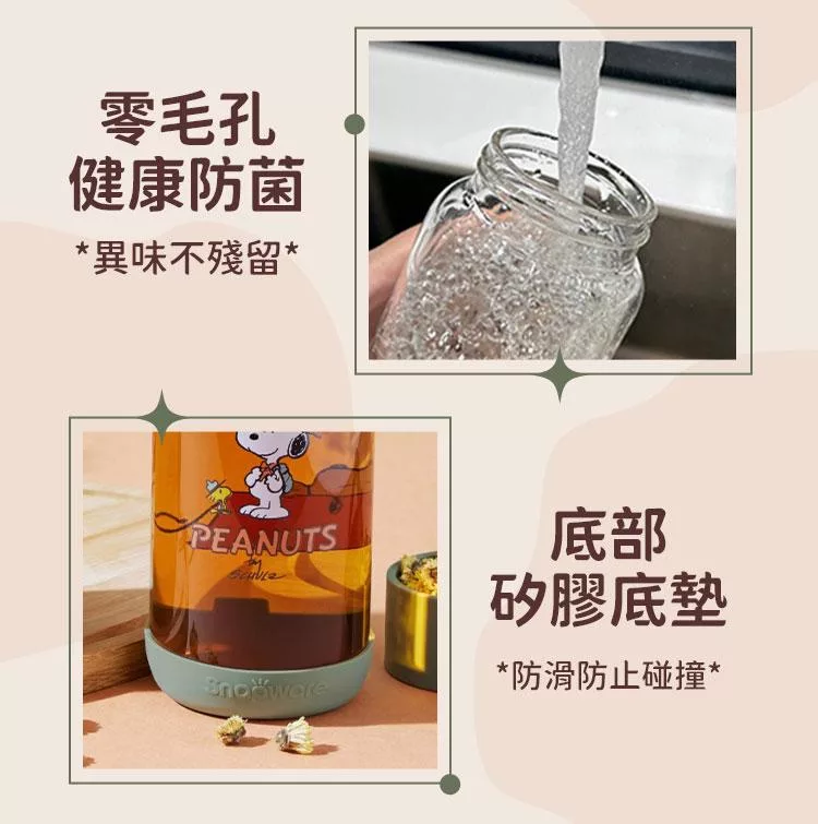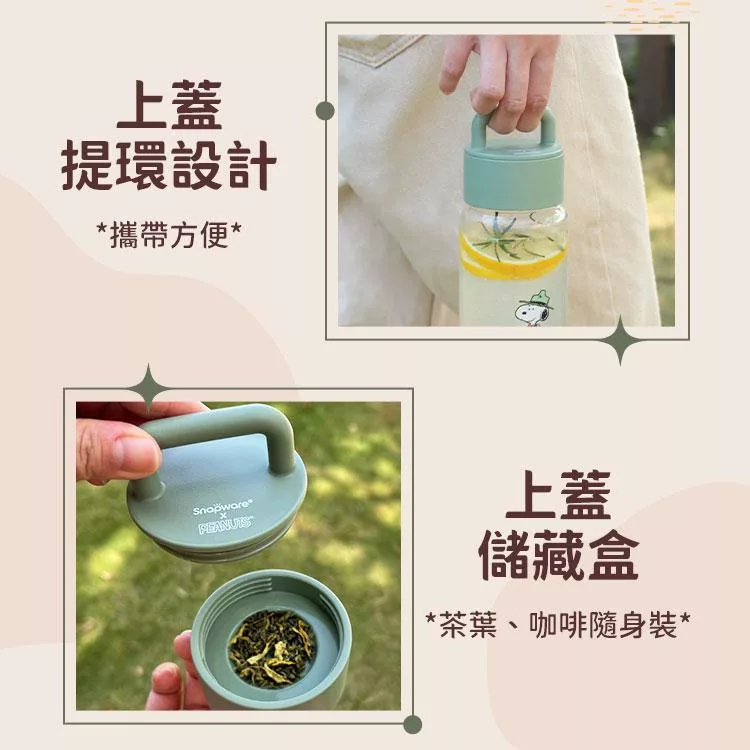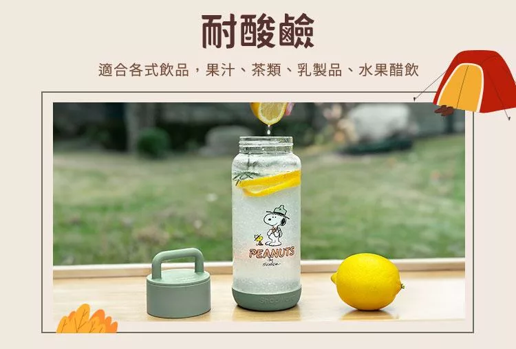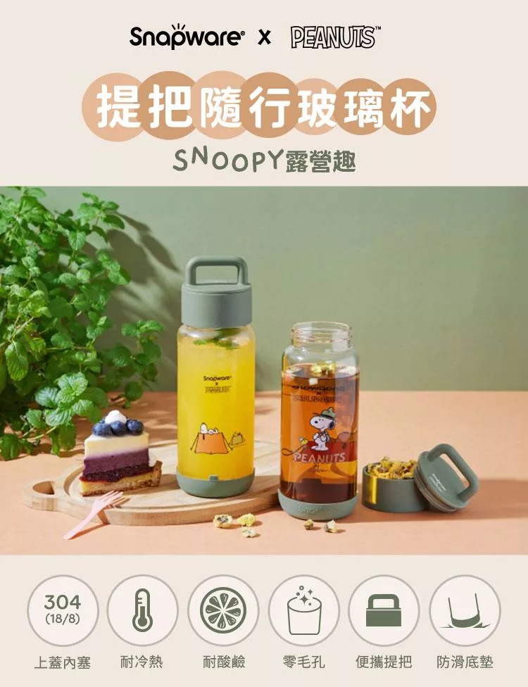 【美國康寧】Snapware SNOOPY 露營趣 提把隨行玻璃杯710ml