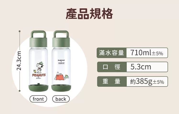 【美國康寧】Snapware Snoopy Sport手提隨行玻璃瓶820ml 腳踏車款