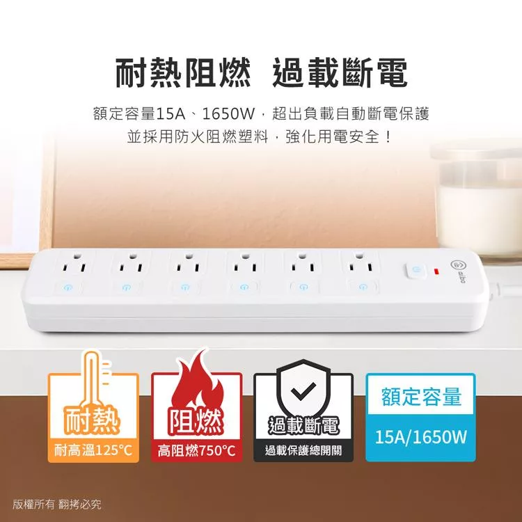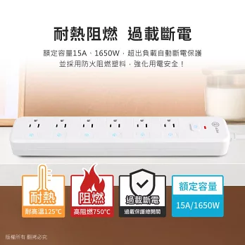 群加 PowerSync 一開六插安全防塵防雷擊延長線/1.8m (TS6W9018)