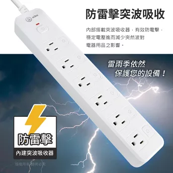 群加 PowerSync 六開六插防雷擊延長線/1.8m(TPS366AN9018)