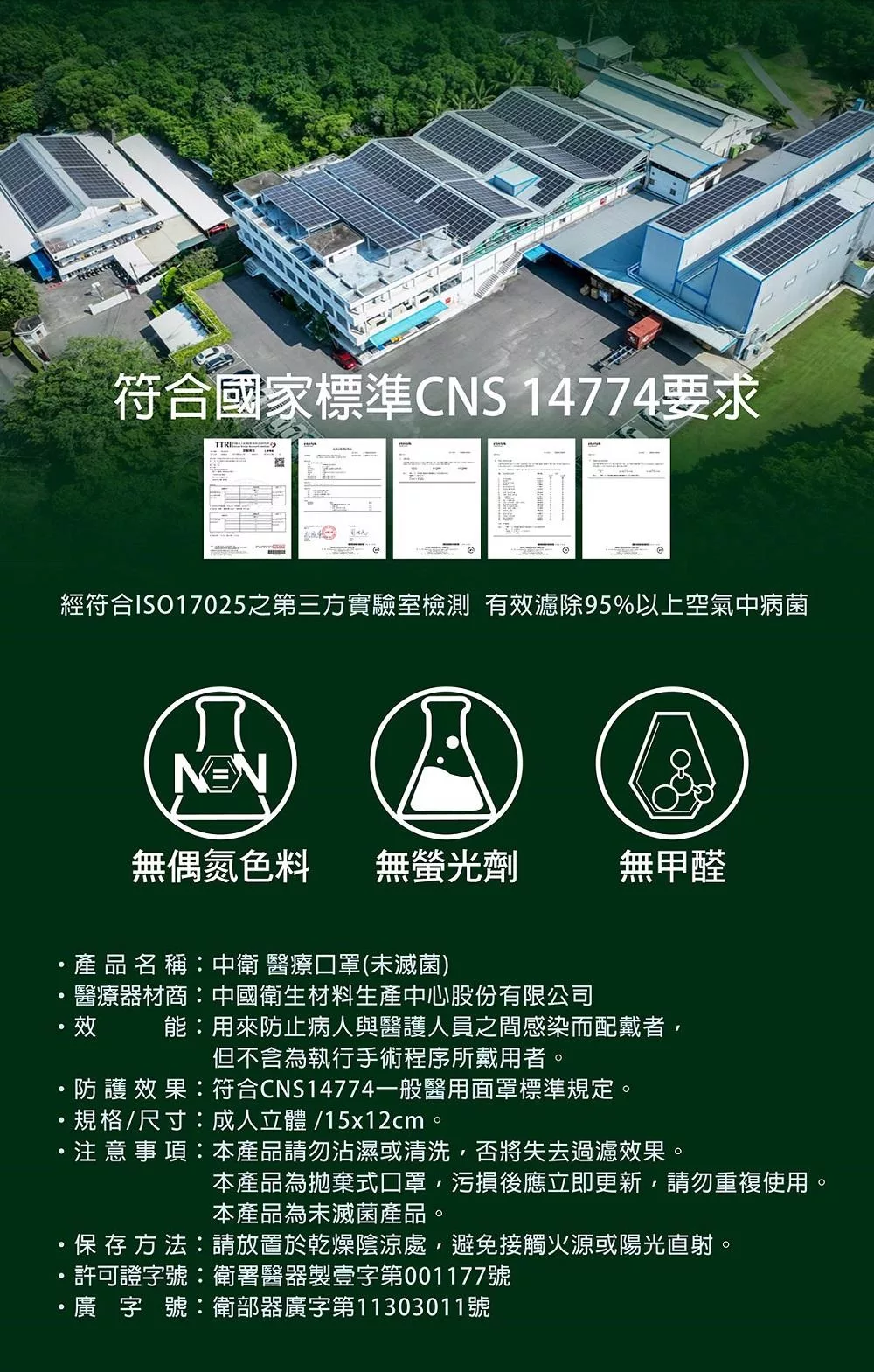 【CSD】中衛醫療口罩-成人平面-輕薄款 綠色(50片/盒)
