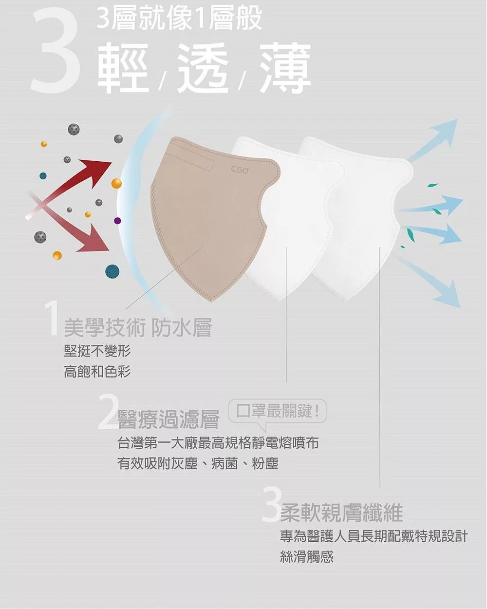 【CSD】中衛醫療口罩-成人平面 麥飯石灰(50片/盒)