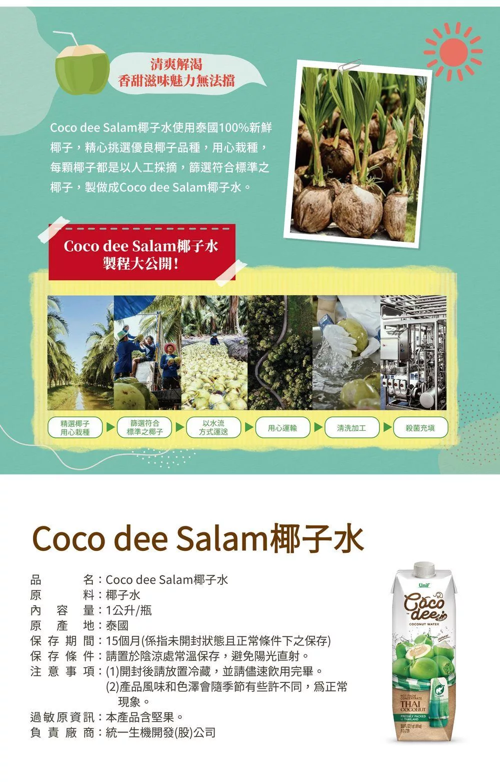 【統一生機】Coco dee Salam 椰子水 1L/瓶
