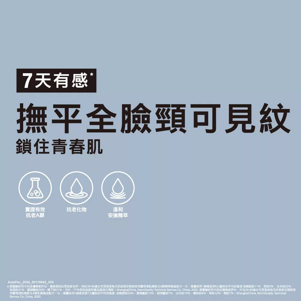 .精純A醇 : 經皮膚專家證實,有助於淡化細紋、暗沉和皺紋
