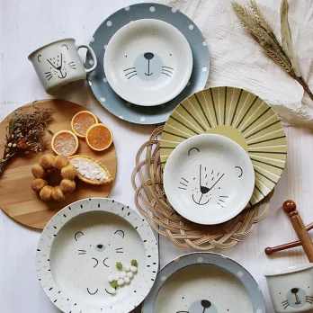 ▲【日本AWASAKA】MoguMogu動物系列陶瓷深盤22.5cm ‧ 獅子
