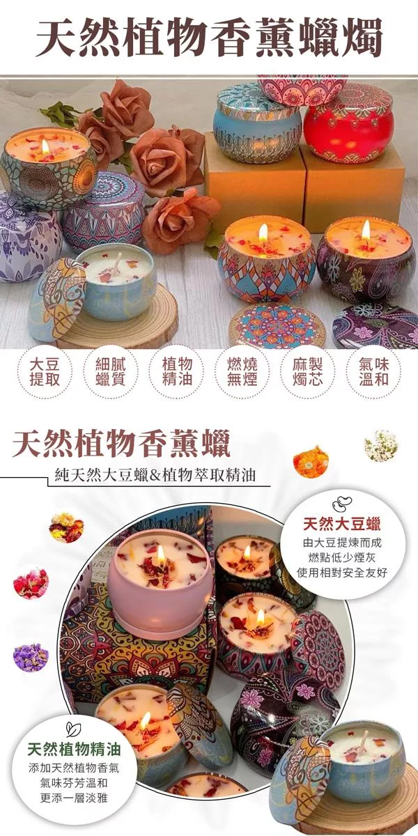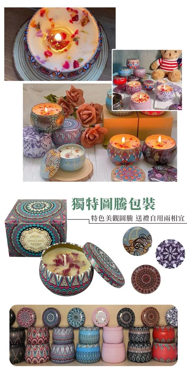 植物香氣,氣味溫和,由大豆提煉而成的大豆蠟,燃點低更少煙,獨特圖騰包裝,典雅美觀。