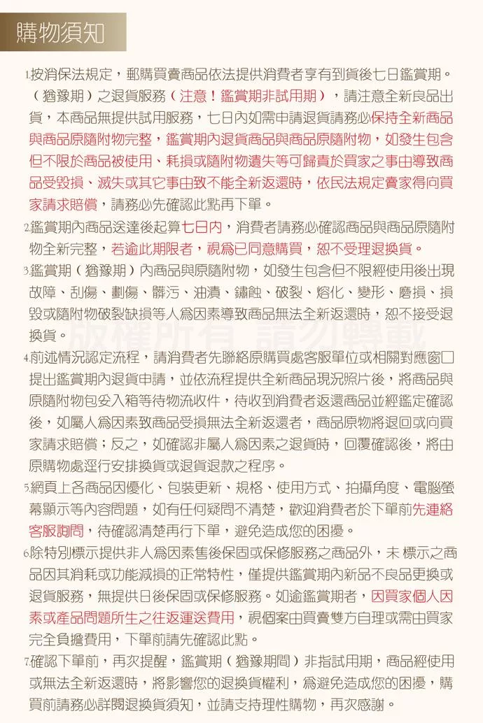 訂購本商品前請務必詳閱商品退換貨原則。