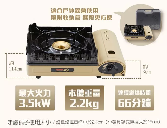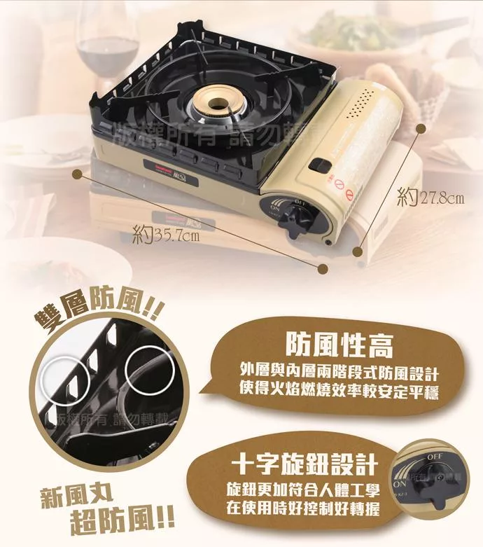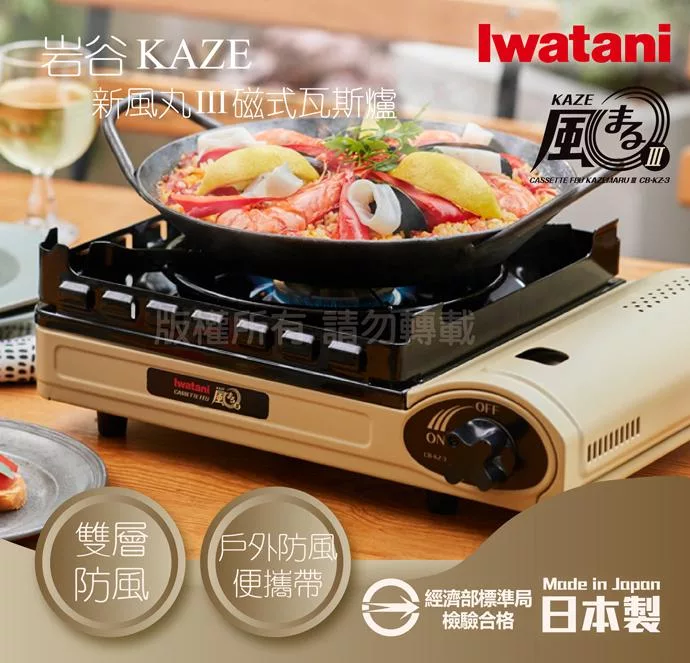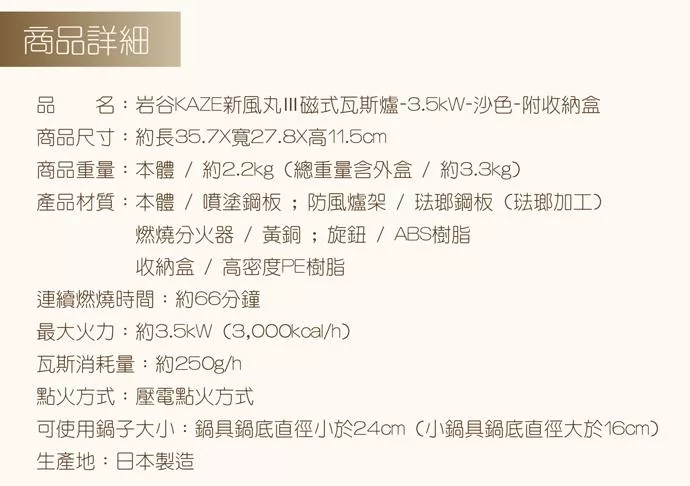 【Iwatani岩谷】KAZE新風丸III磁式瓦斯爐3.5kW-沙色-附收納盒(CB-KZ-3)