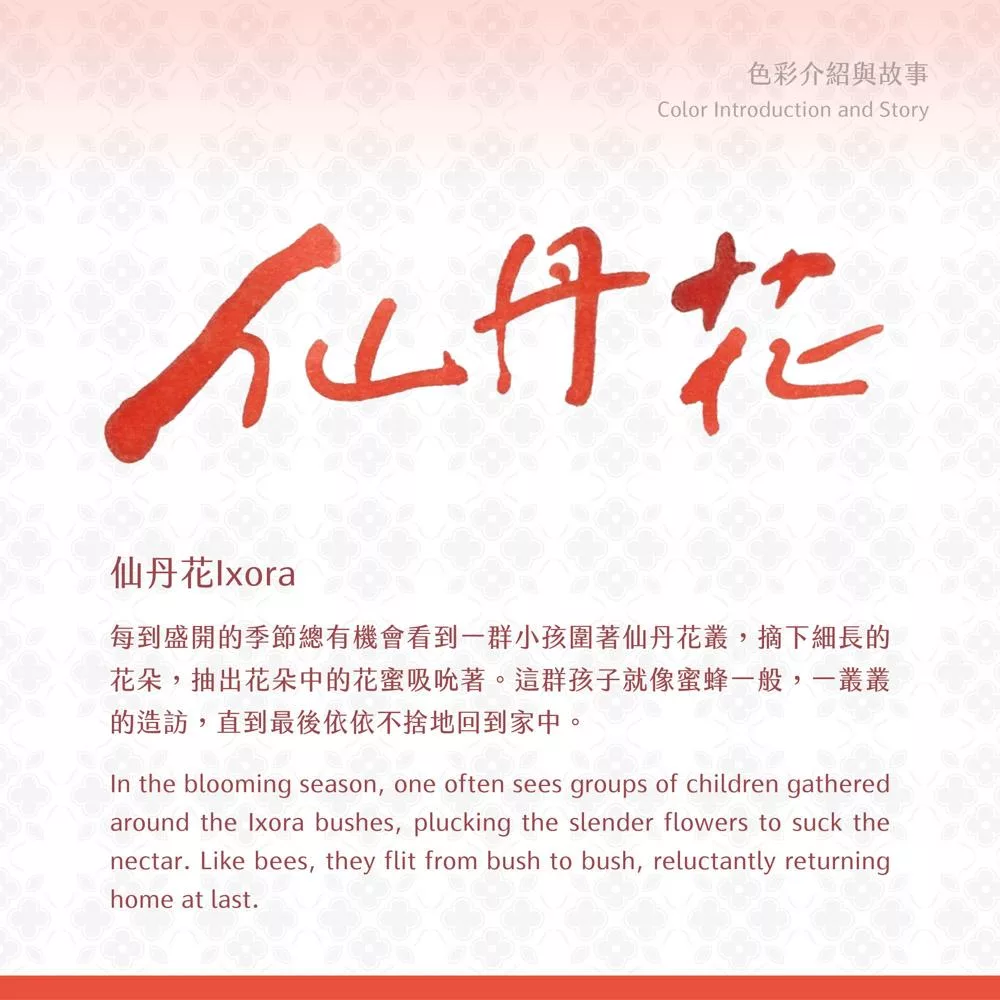 每到盛開的季節總有機會看到一群小孩圍著仙丹花叢,摘下細長的花朵,抽出花朵中的花蜜吸吮著。這群孩子就像蜜蜂一般,一叢叢的造訪,直到最後依依不捨地回到家中。