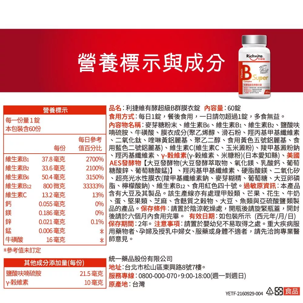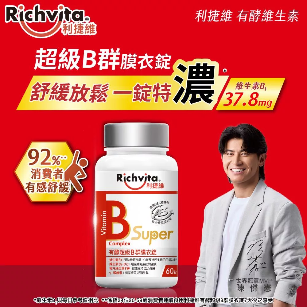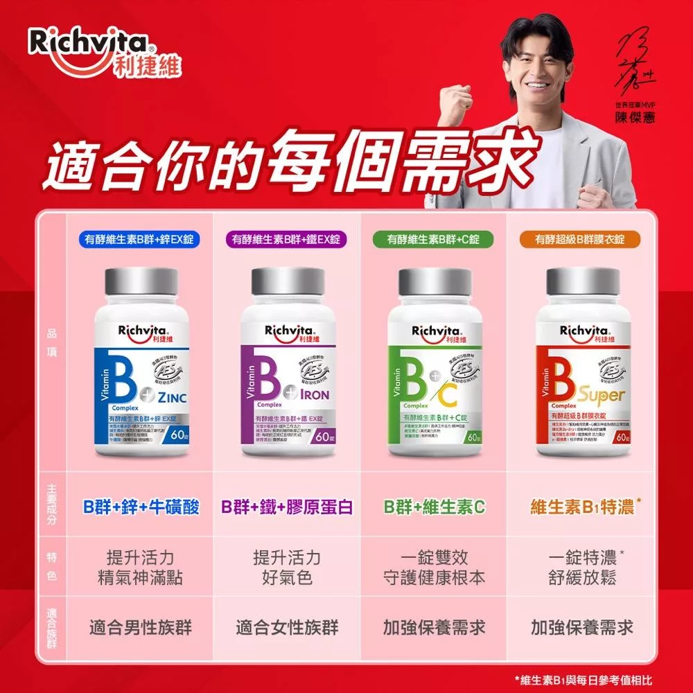 【Richvita利捷維】有酵維生素(60錠) B群+鋅EX錠(男性)