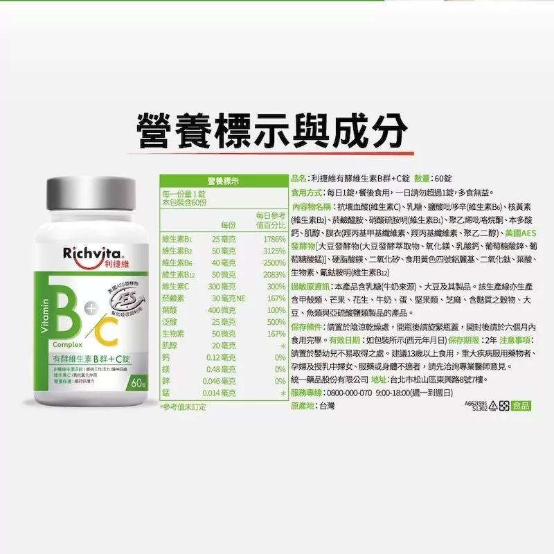 【Richvita利捷維】有酵維生素(60錠) B群+鋅EX錠(男性)