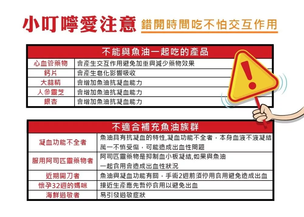 3. 近期開刀者-魚油與凝血功能有關,手術2週前須停用食用避免造成出血