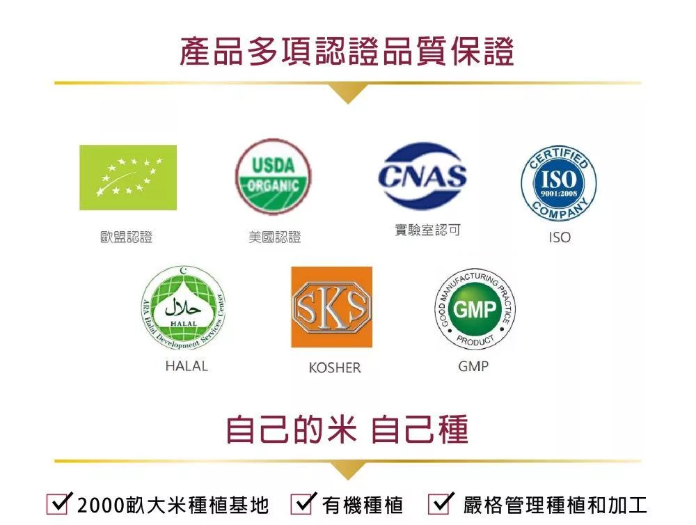 三效合一足量關鍵配方 使用歐美認證大米,SGS檢驗橘黴素、重金屬檢測合格通過