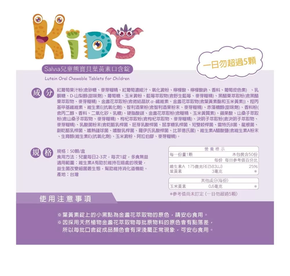 食用方式:兒童每日2-3次,每次1錠,多食無益