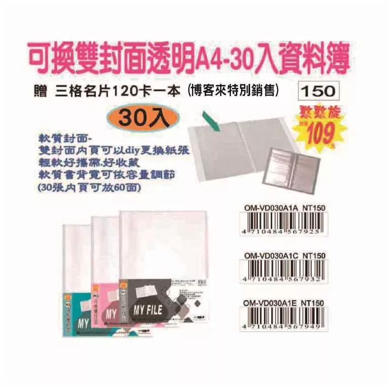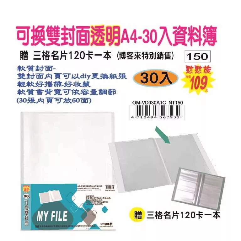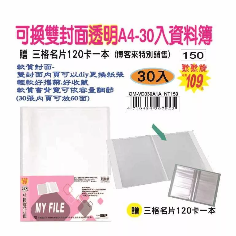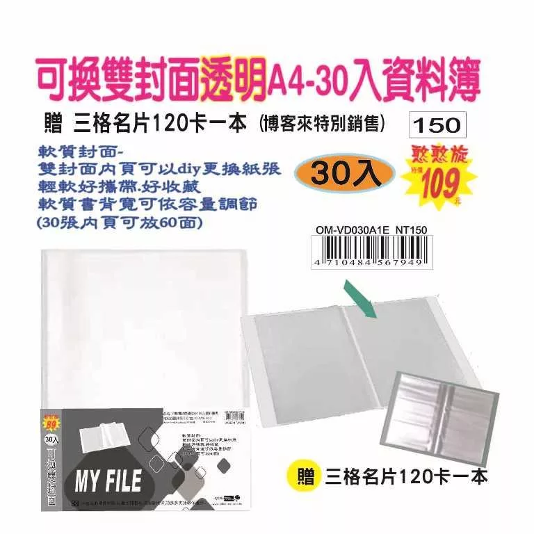 #無印軟質-雙封面 A4-30入資料簿(60面)