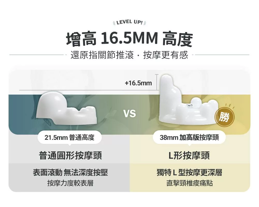 因此,按摩的選擇,我們採用了 L 型的按摩頭設計