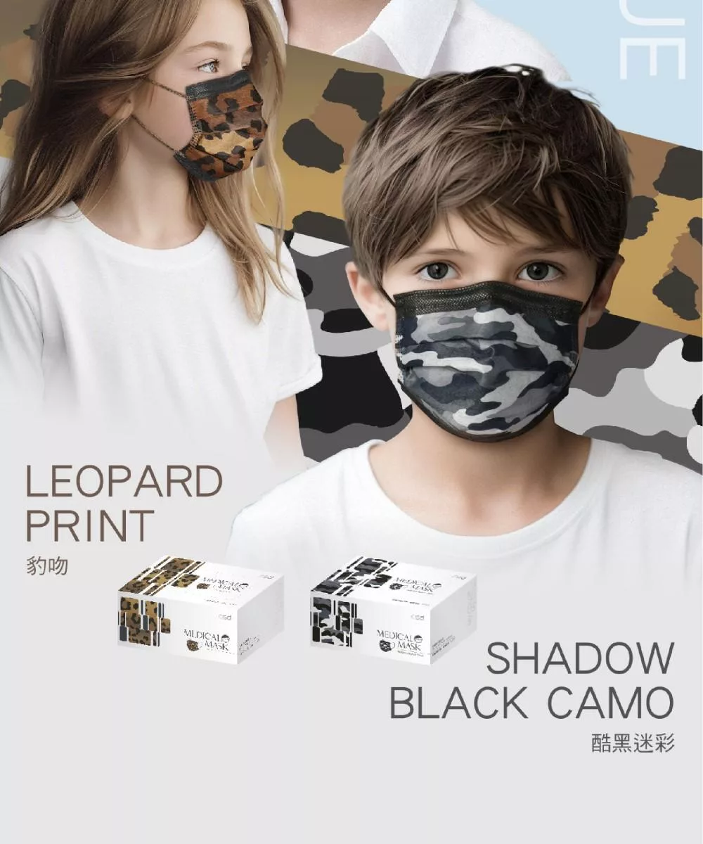 【CSD】中衛醫療口罩-兒童平面-酷黑 (30片/盒)