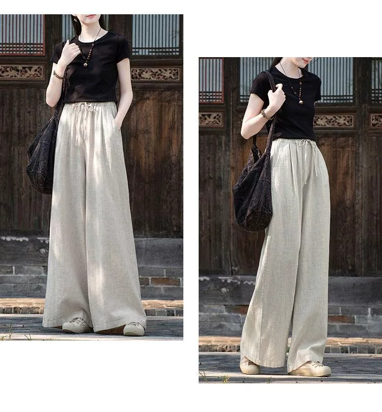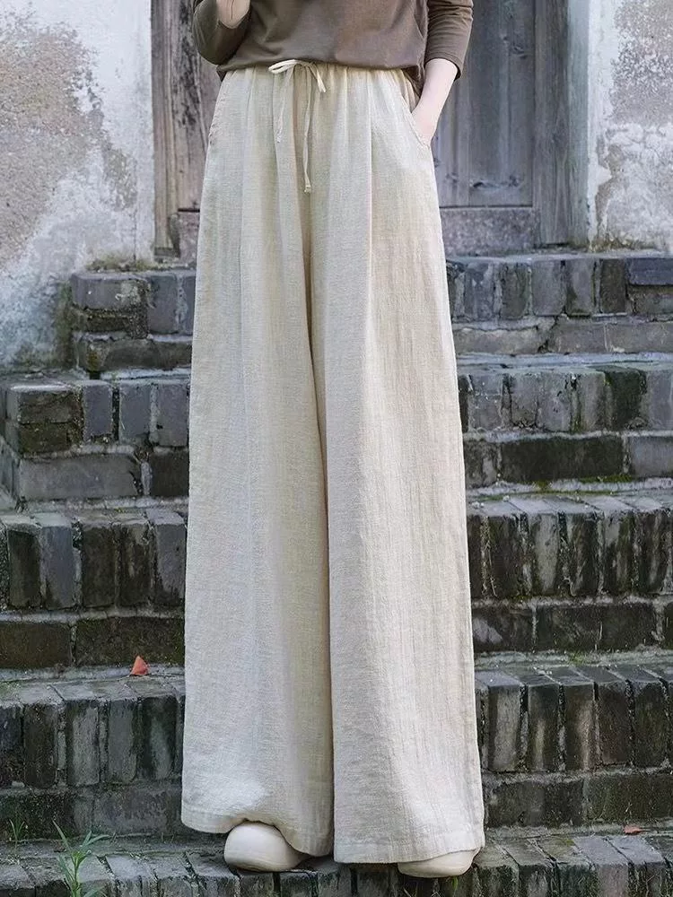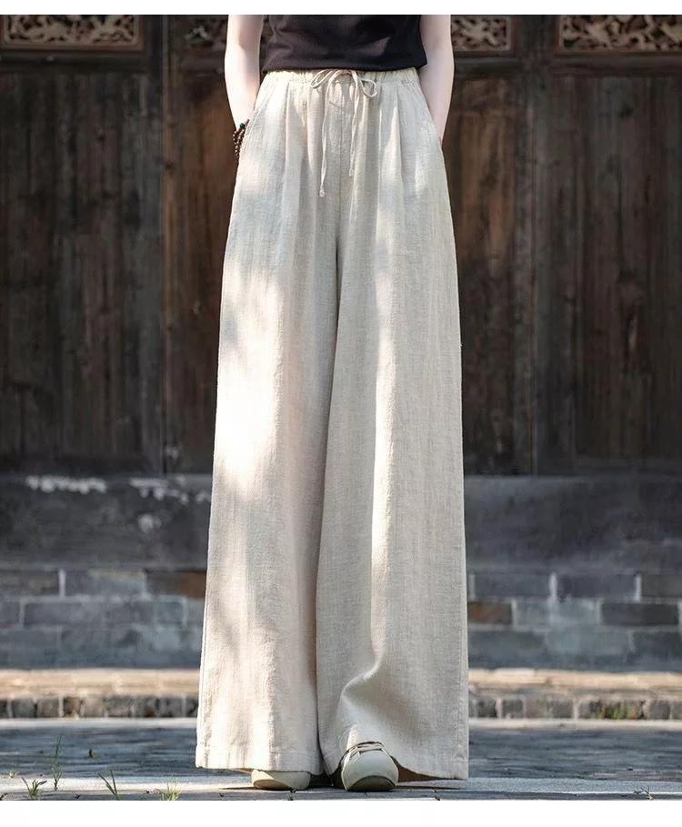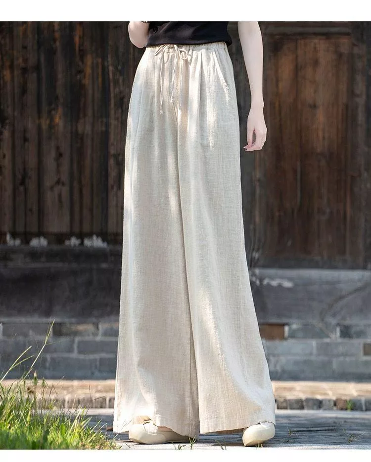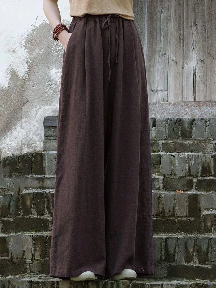 【慢。生活】中大尺碼鬆緊高腰文藝棉麻拖地闊腿褲 Y566 FREE 深藍色 FREE 深藍色