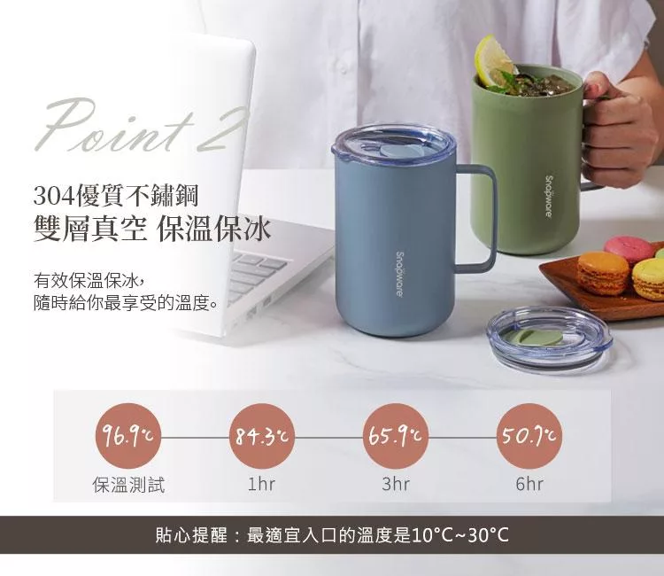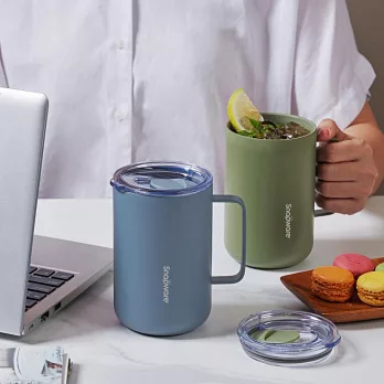【美國康寧】Snapware 鋅light輕瓷不鏽鋼保溫保冰辦公杯620ml- 峽谷灰