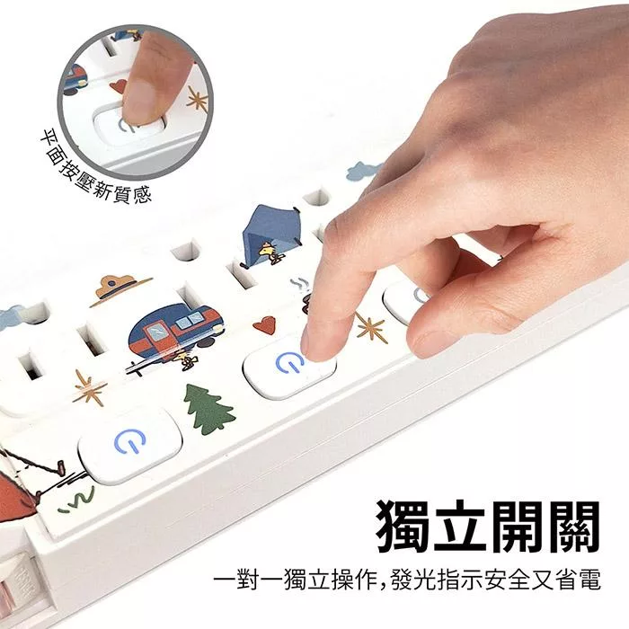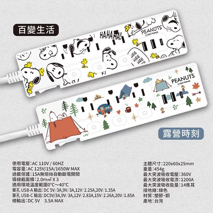 【正版授權】SNOOPY史努比 PD 37W平貼式延長線 按壓式4開3插+USB/Type-C延長線 1.8M 露營時刻