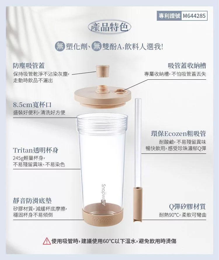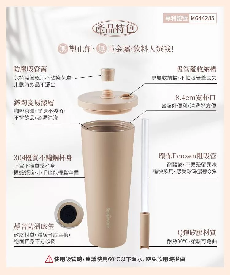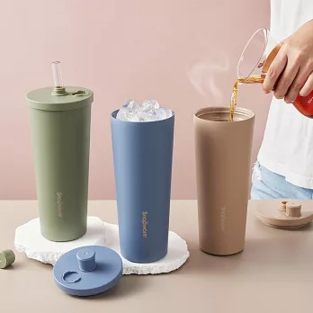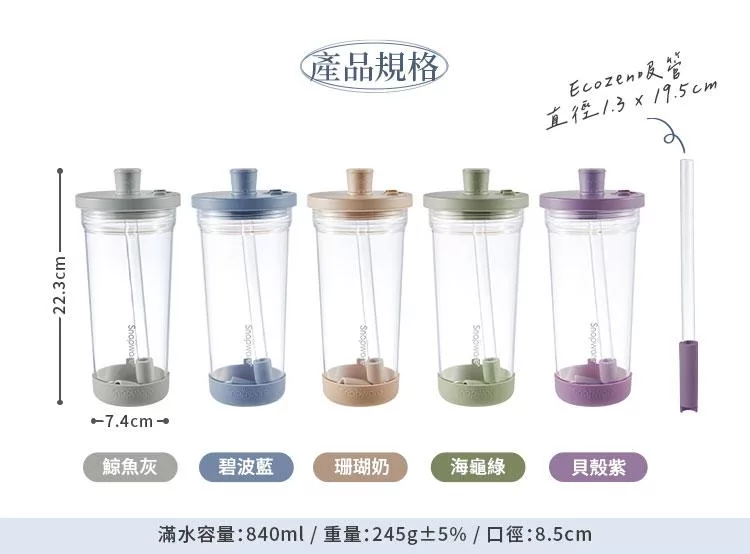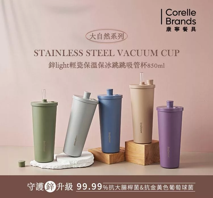 商品名稱:【美國康寧】Snapware 鋅light輕瓷保溫保冰跳跳吸管杯850ml(附杯套)