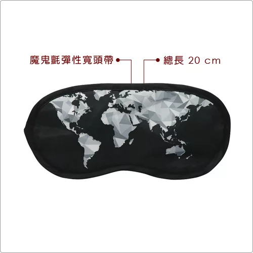 睡眠時難免充斥環境光線的刺激,想要充分休息時就需要眼罩的輔助。此款以世界地圖為發想,搭配幾何色塊,予人異地旅遊未知的想像空間。後方頭帶為寬版魔鬼氈彈性束帶,可自行調整鬆緊度,適合多數頭圍使用;眼罩輕巧、內層柔軟不悶熱,讓您配戴舒適。