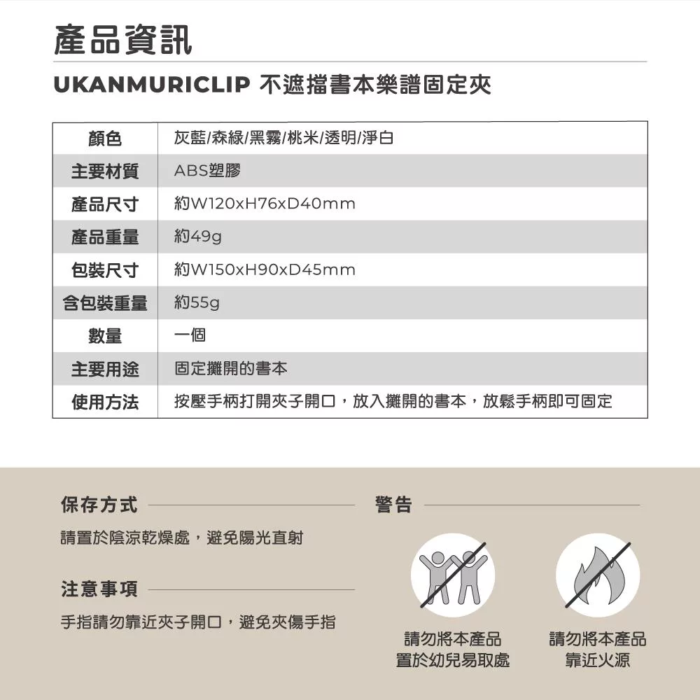 商品名稱:UKANMURICLIP 不遮擋書本樂譜固定夾