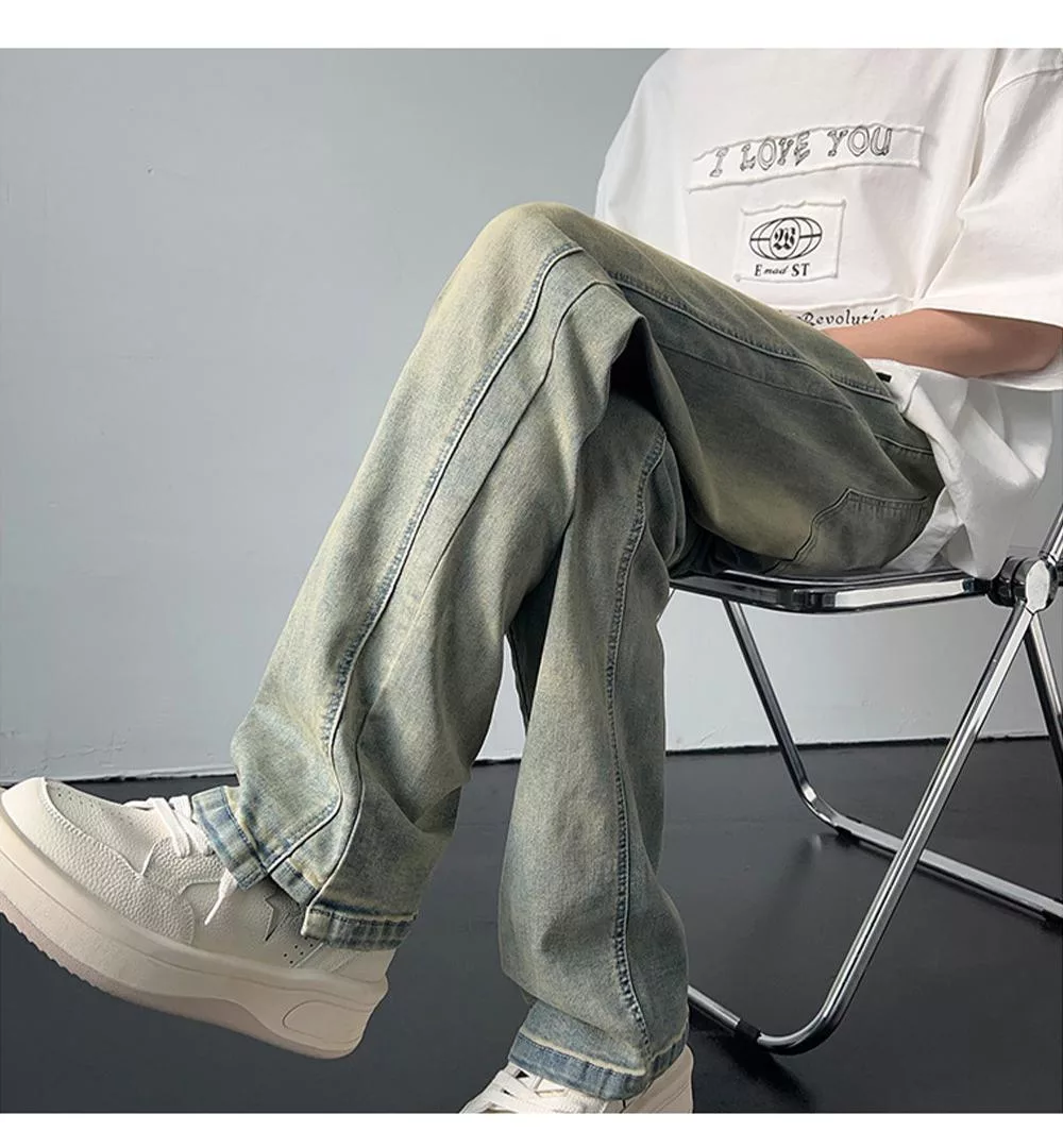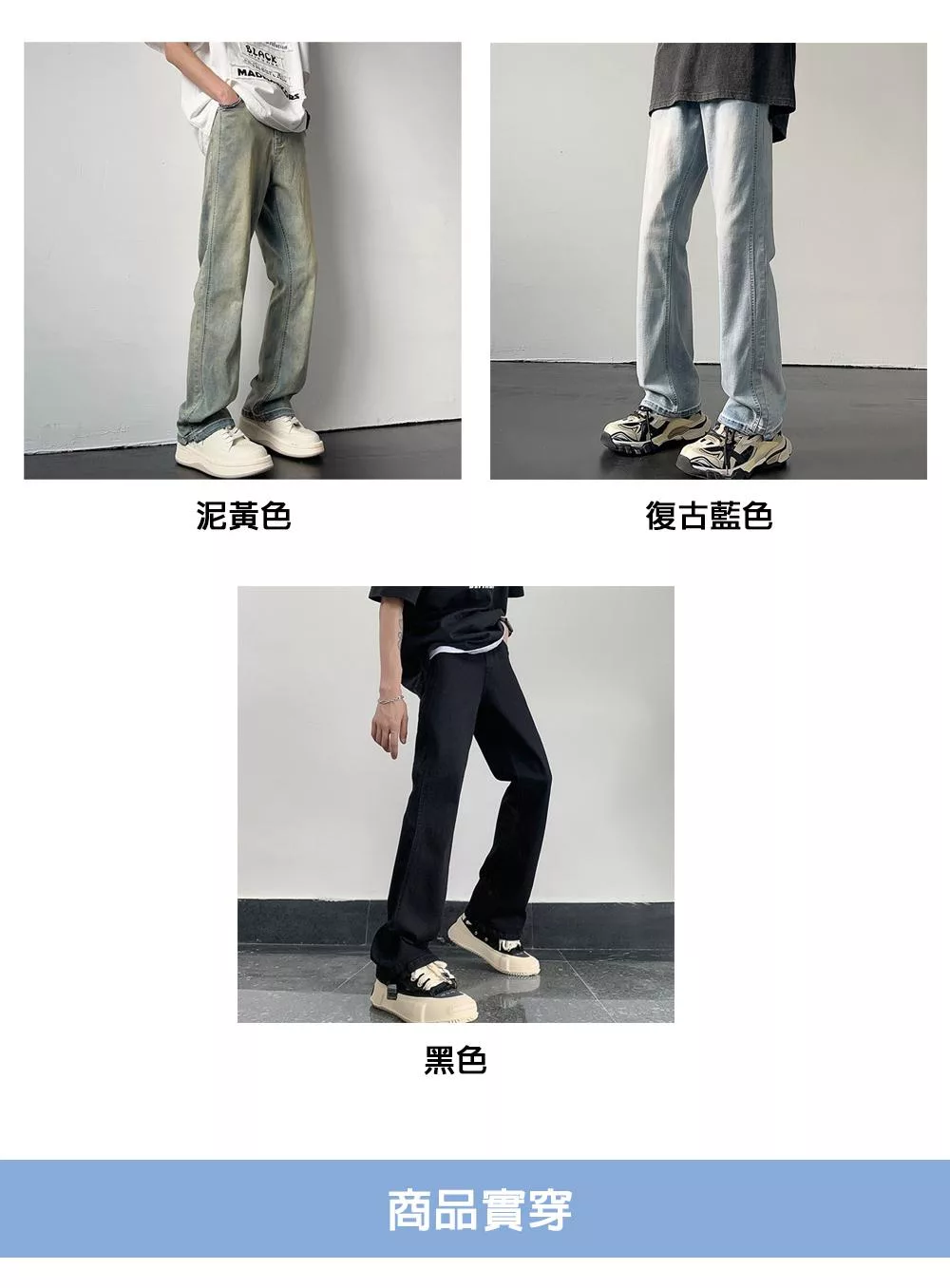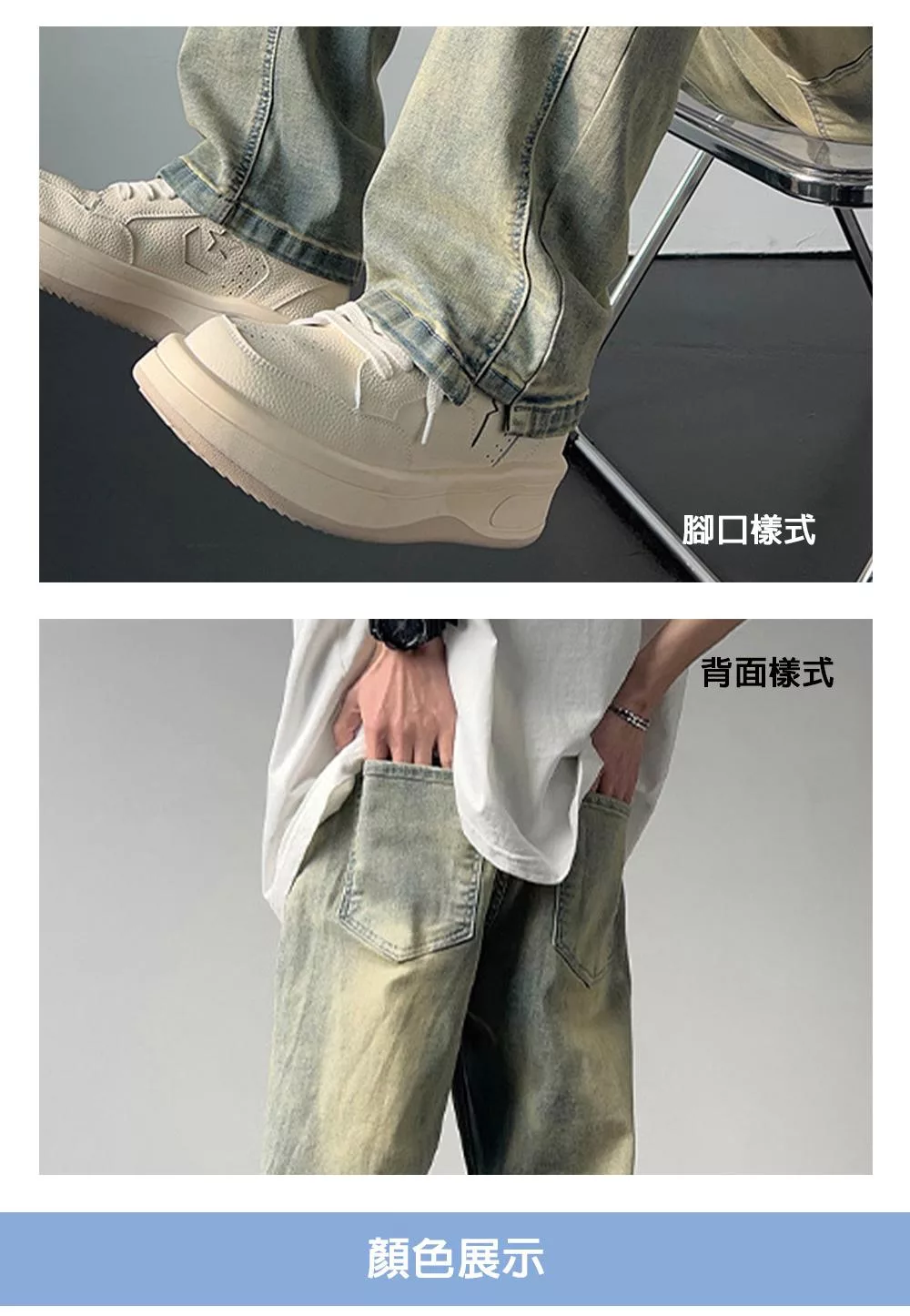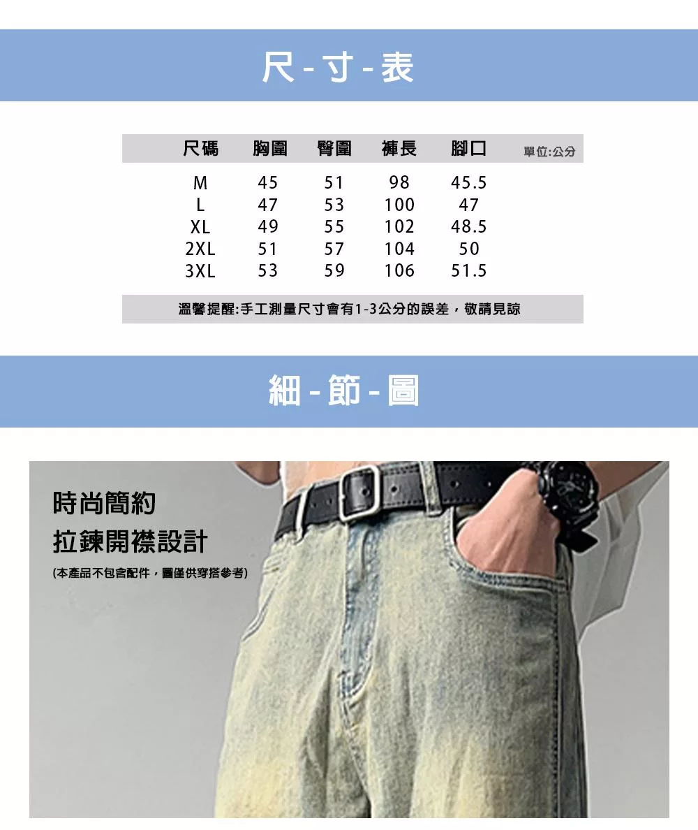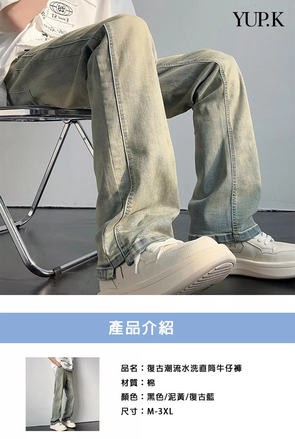 名稱:復古潮流水洗直筒牛仔褲