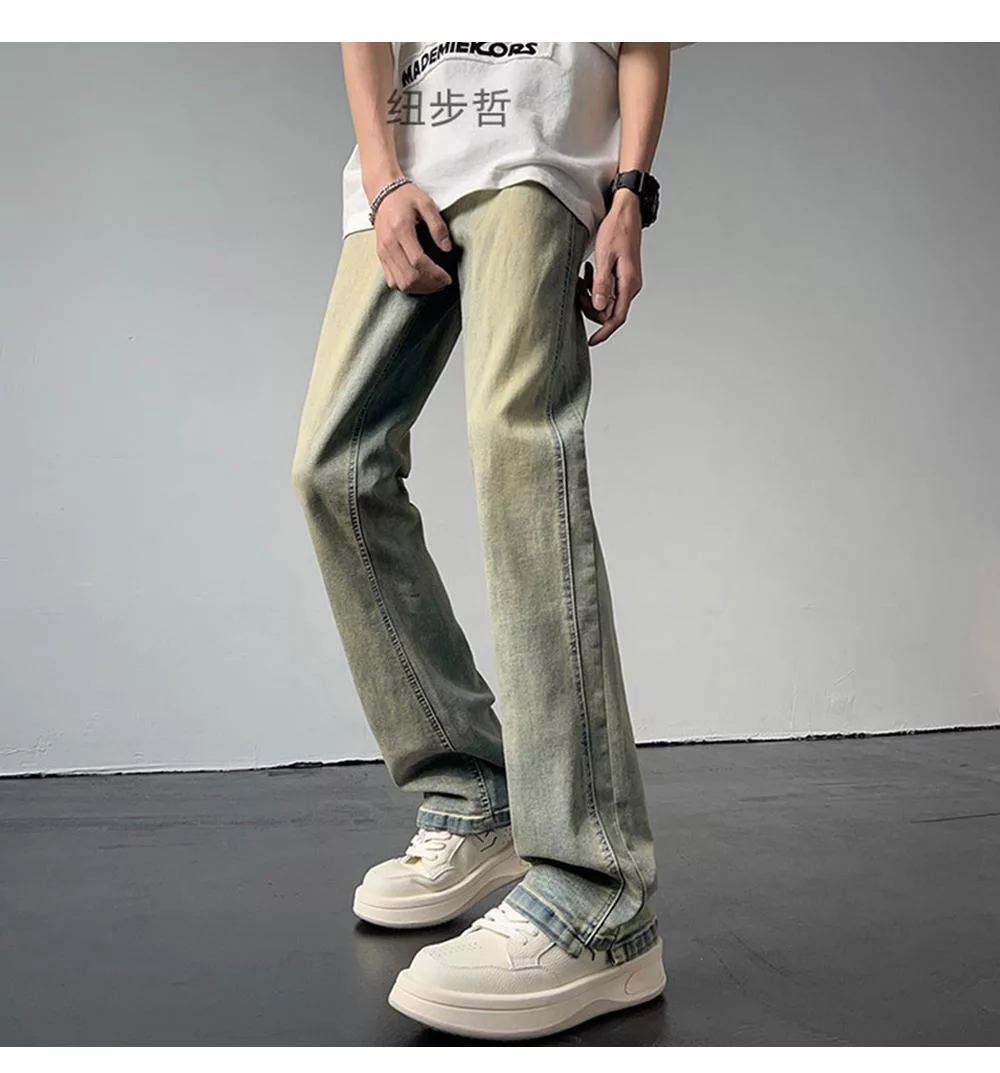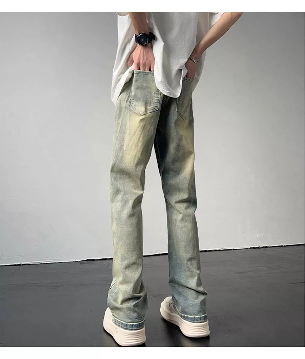 【AMIEE】復古潮流水洗直筒牛仔褲(男裝/KDPY-6133) M 泥黃