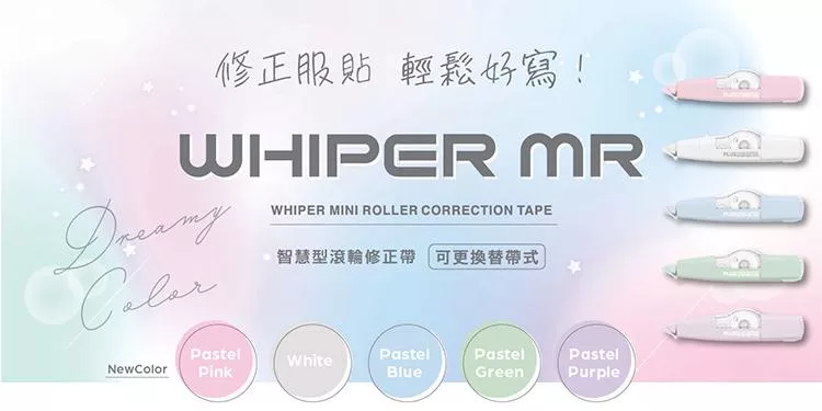 修正帶,提供書寫錯誤時,立即塗改做修正,限量色彩發售
