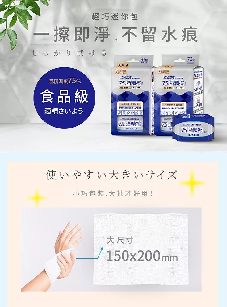 【立得清】75%酒精擦濕紙巾 清潔抗菌 擦拭無水痕-食品及酒精(10抽x10包)