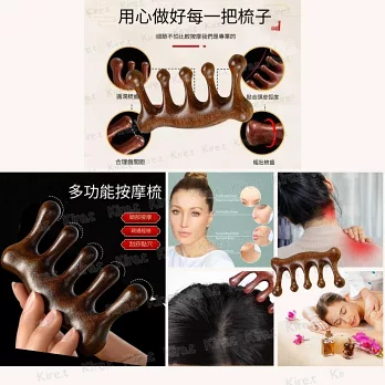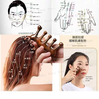 檀木經絡按摩梳 臉部頭皮肩頸刮痧板放鬆穴位髮根 白頭髮 脫髮 失眠按摩贈收納袋 Kiret