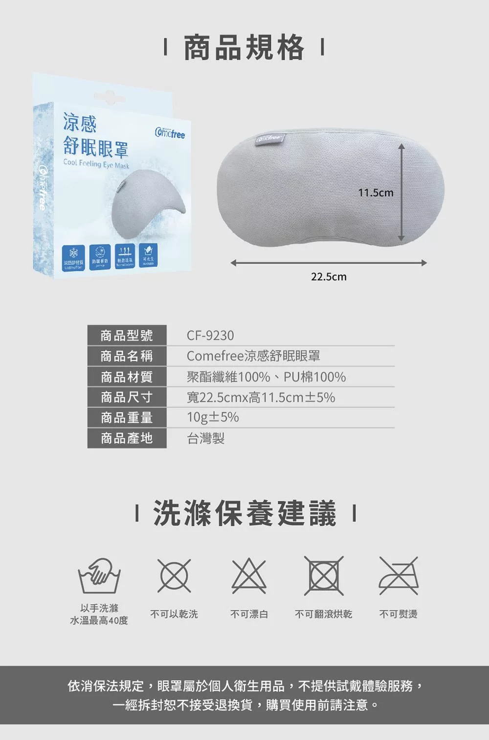 【Comefree康芙麗】涼感透氣舒眠眼罩 台灣製
