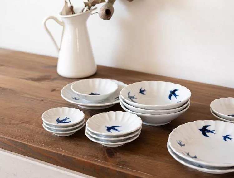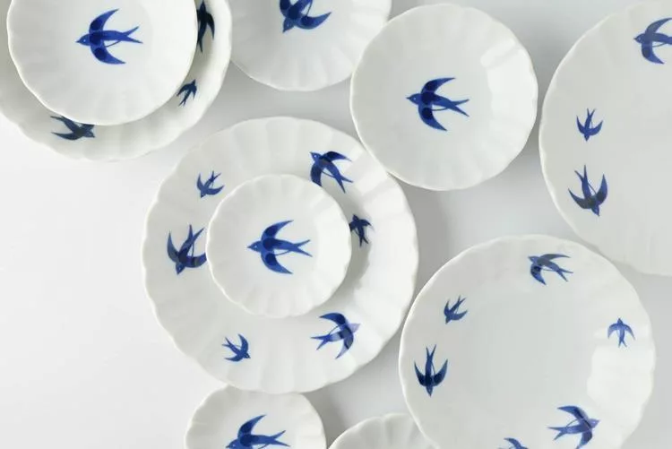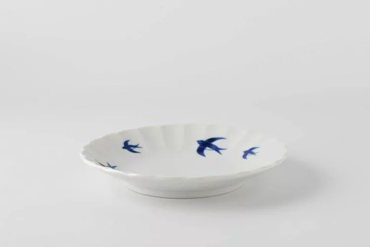 【日本小倉陶器】美濃燒 優雅花草 超輕量陶瓷淺盤16cm ‧ 綠