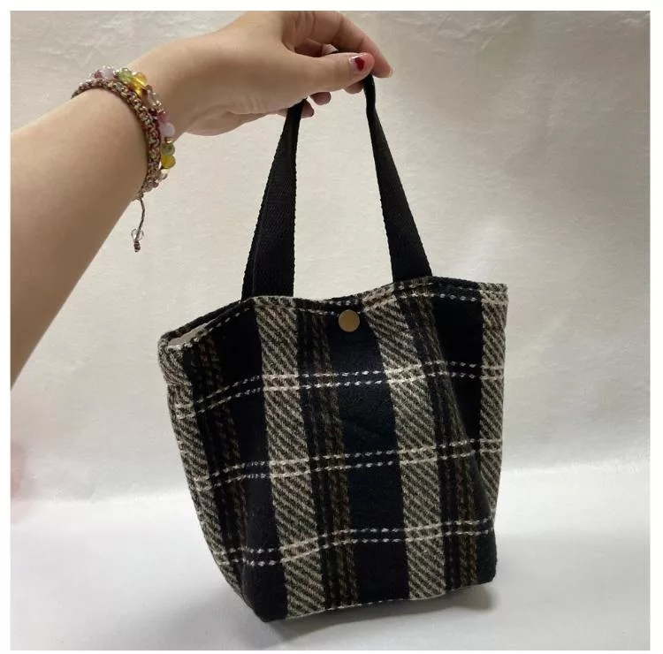 【JP生活館 】韓國小眾貓咪格子水桶包 * 小黑猫