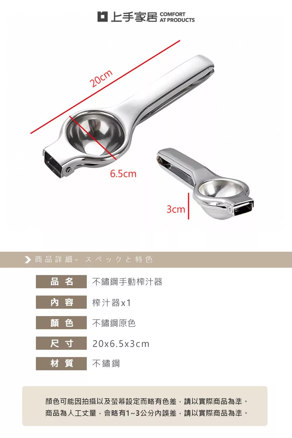 【上手家居】不鏽鋼榨汁器(榨汁機/擠檸檬器/檸檬榨汁器/擠檸檬/手動榨汁機/檸檬擠壓器/壓汁器/手動榨汁)