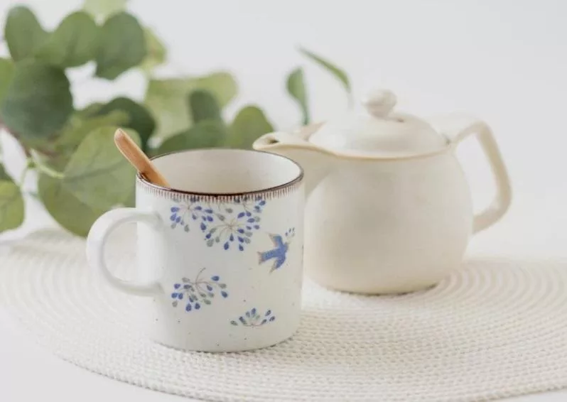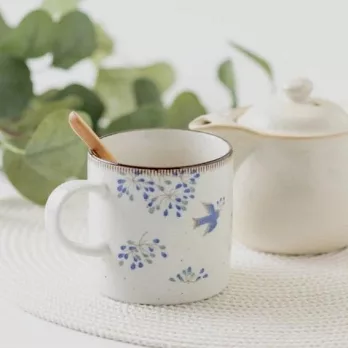 【日本Marusan Kondo】Aquarelle小花 陶瓷馬克杯340ml ‧ 藍