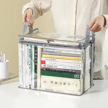 【E.dot】加大容量防塵透明書收納袋 (玩偶玩具收納袋) 透明灰邊
