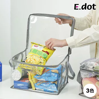【E.dot】大容量PVC透明棉被收納袋 (換季衣物收納袋) 灰邊