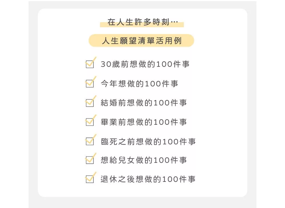 人生願望清單,將成為您人生的引導星。