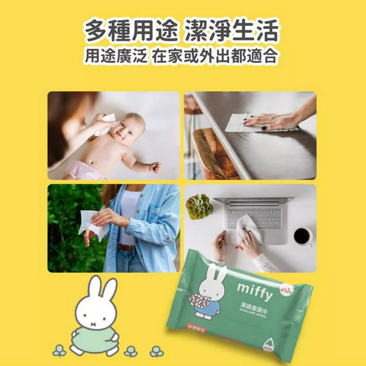 商品名稱: 樂彩森林 miffy潔膚柔濕巾- 20抽-黃