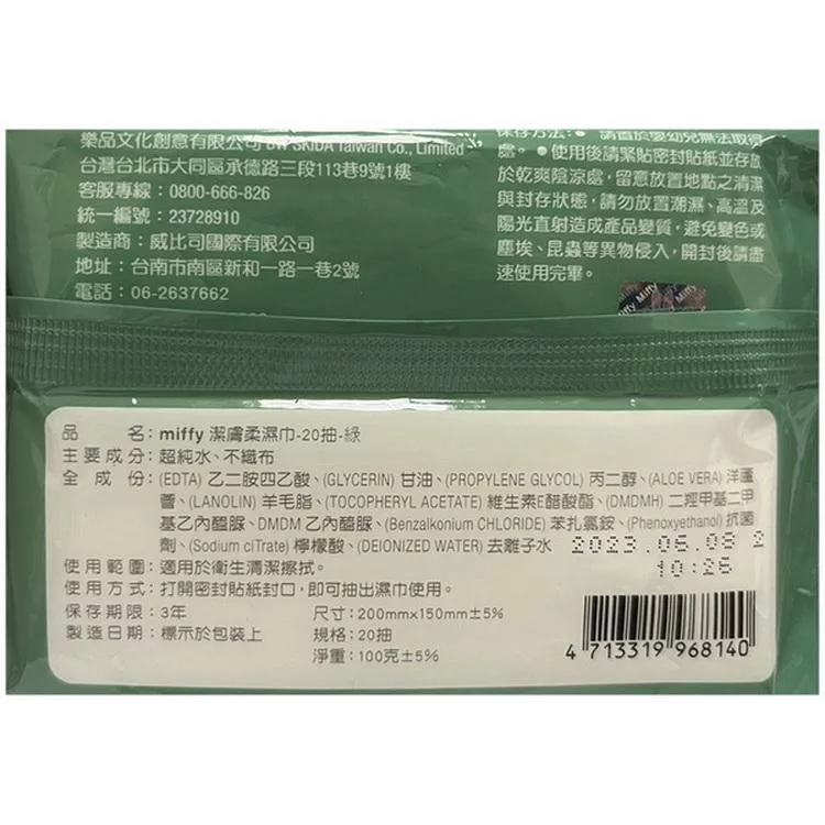 商品名稱: 樂彩森林 miffy潔膚柔濕巾- 20抽-綠