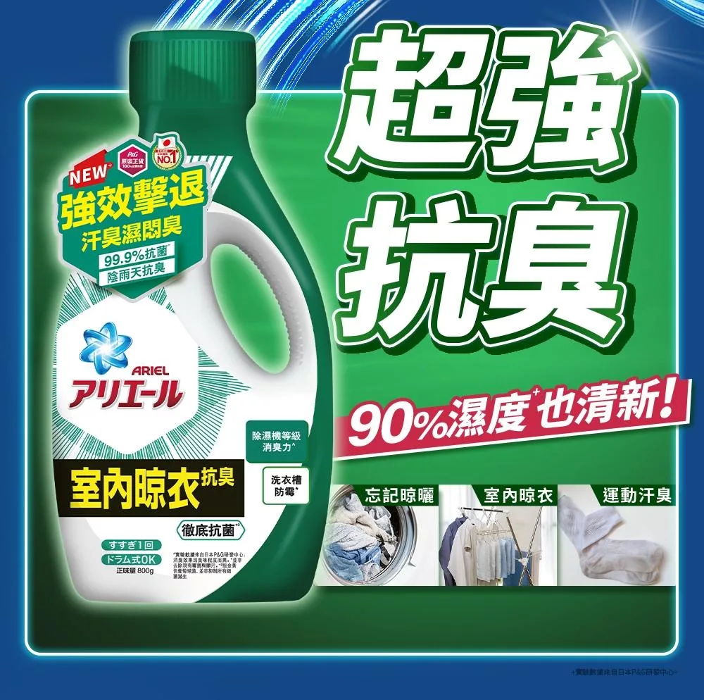 日本 P&G Ariel Ariel 超濃縮清新除臭洗衣精-室內曬衣Plus(綠色) 700g*3入組
