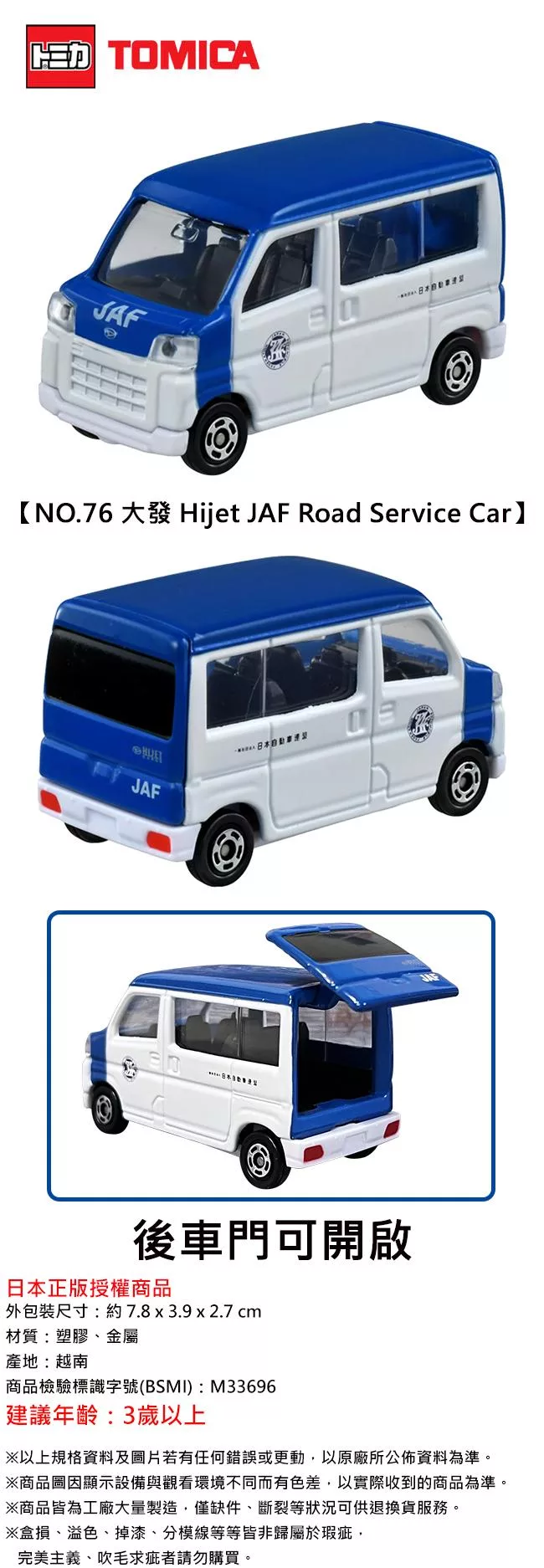 【日本正版授權】TOMICA NO.76 大發 Hijet JAF Road Service Car 道路服務車 DAIHATSU 玩具車 多美小汽車